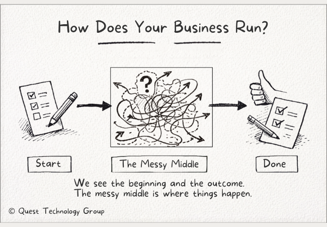 We see the outcome as straightforward, but it really took a lot of hands and heads in the messy middle to get there. This middle is where your business actually runs.